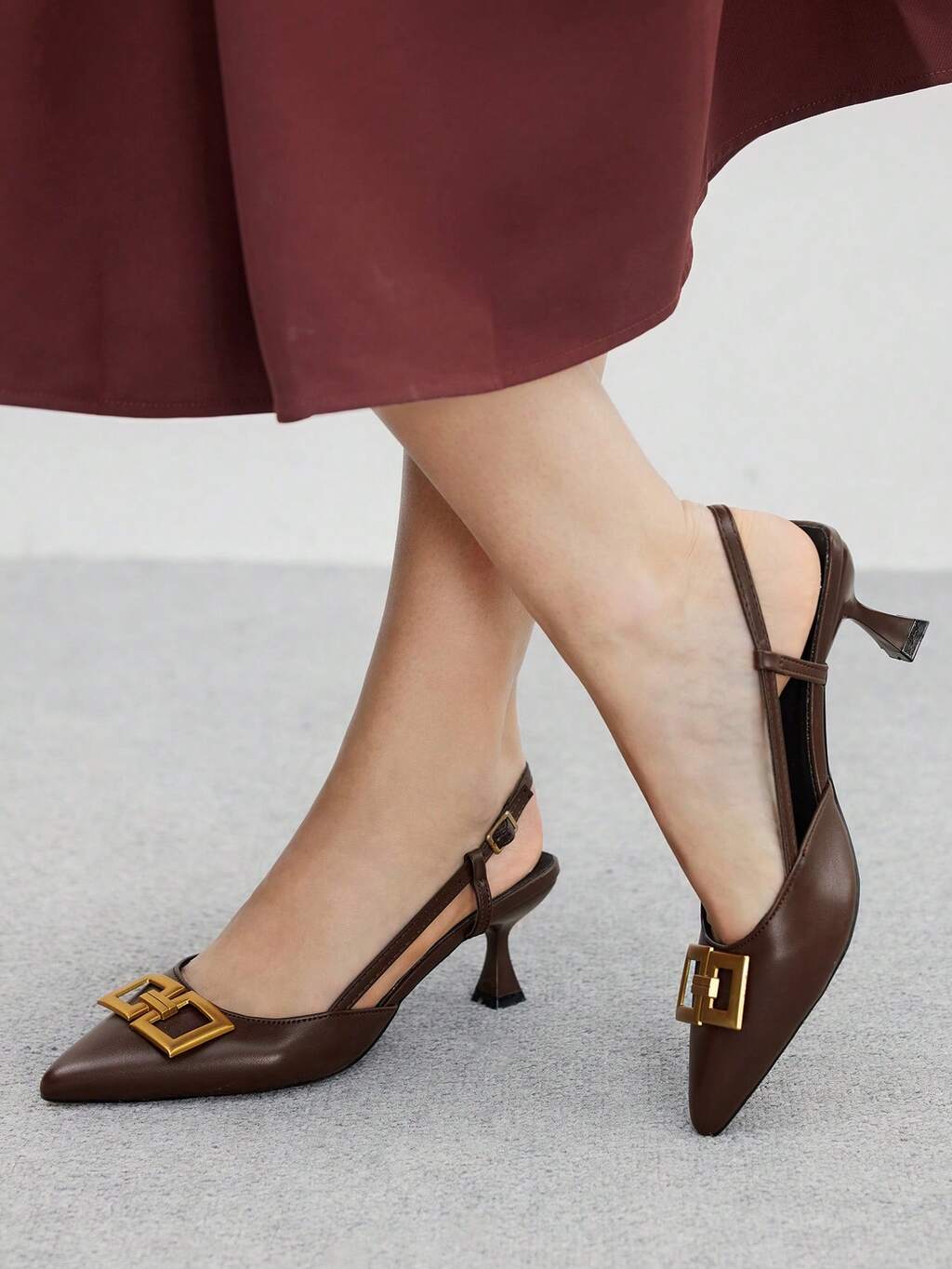 CUCCOO BIZCHIC Escarpins femme à bout pointu, talon kitten, boucle métallique, couleur café, mode, polyvalents, sans dos, pour la vie quotidienne, les sorties, les courses, le travail