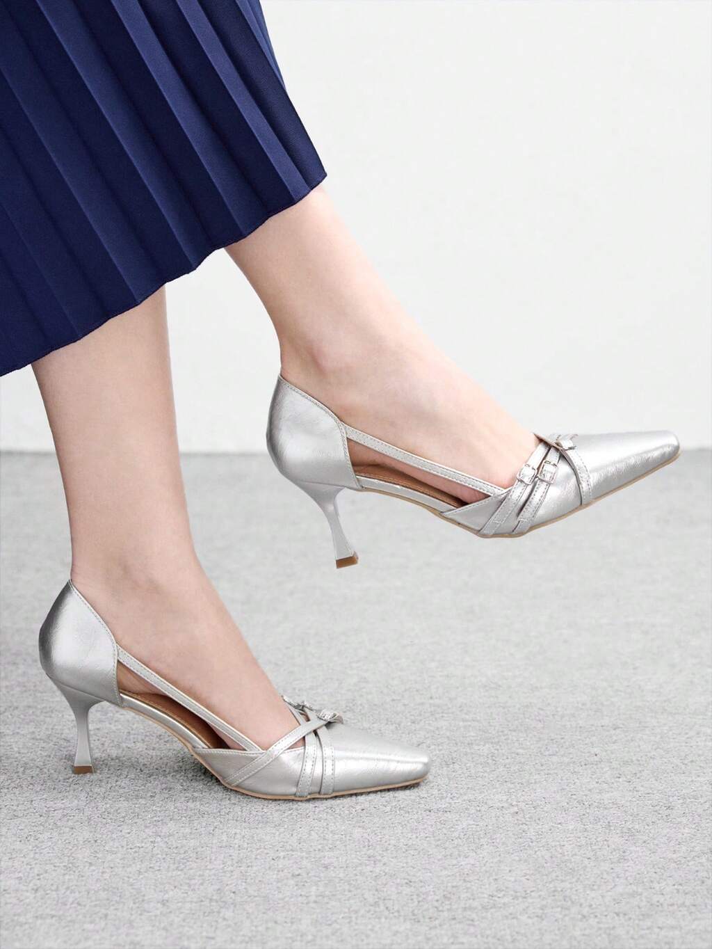 CUCCOO BIZCHIC Chaussures à talons aiguilles rondes pour femmes avec boucle décorative, en PU vintage. Chaussures à enfiler creuses, minimalistes et confortables pour le quotidien, les fêtes et les banquets