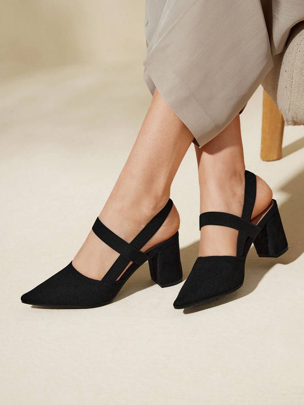 CUCCOO BASICS Talons épais à bout pointu en PU avec sangle en tissu pour femmes. Convient pour les sorties, les fêtes et les vacances