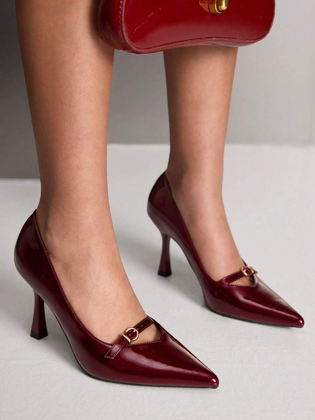 CUCCOO BIZCHIC Talons hauts à bout pointu de style français, élégance française + style sexy mature, matériau brillant, bride croisée + décoration boucle métallique, convient aux femmes, trajets quotidiens, sorties, bureau léger et autres occasions