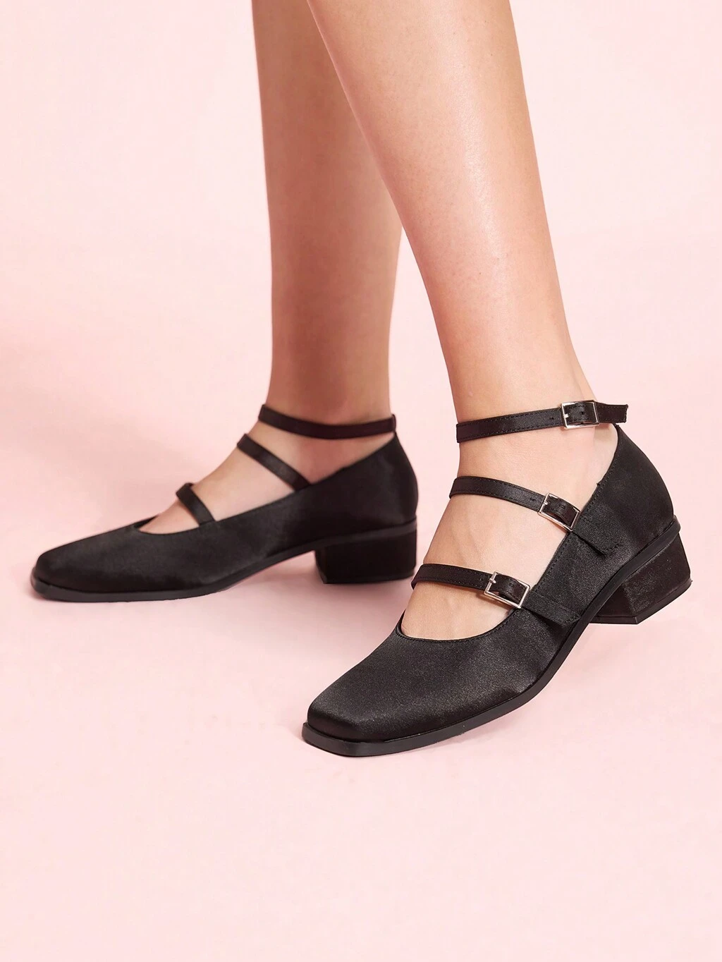 CUCCOO CHICEST Sandales à talons hauts carrés en satin rose français avec multi-rubans