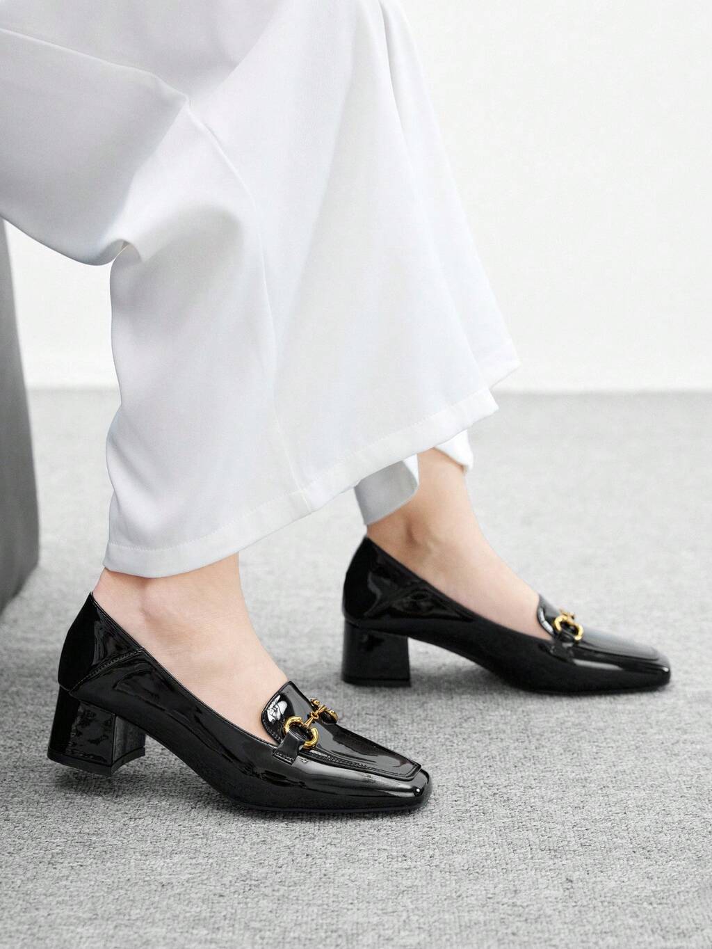 CUCCOO BIZCHIC Chaussures à bride en T en cuir verni noir classiques à talon bas pour Noël et le printemps