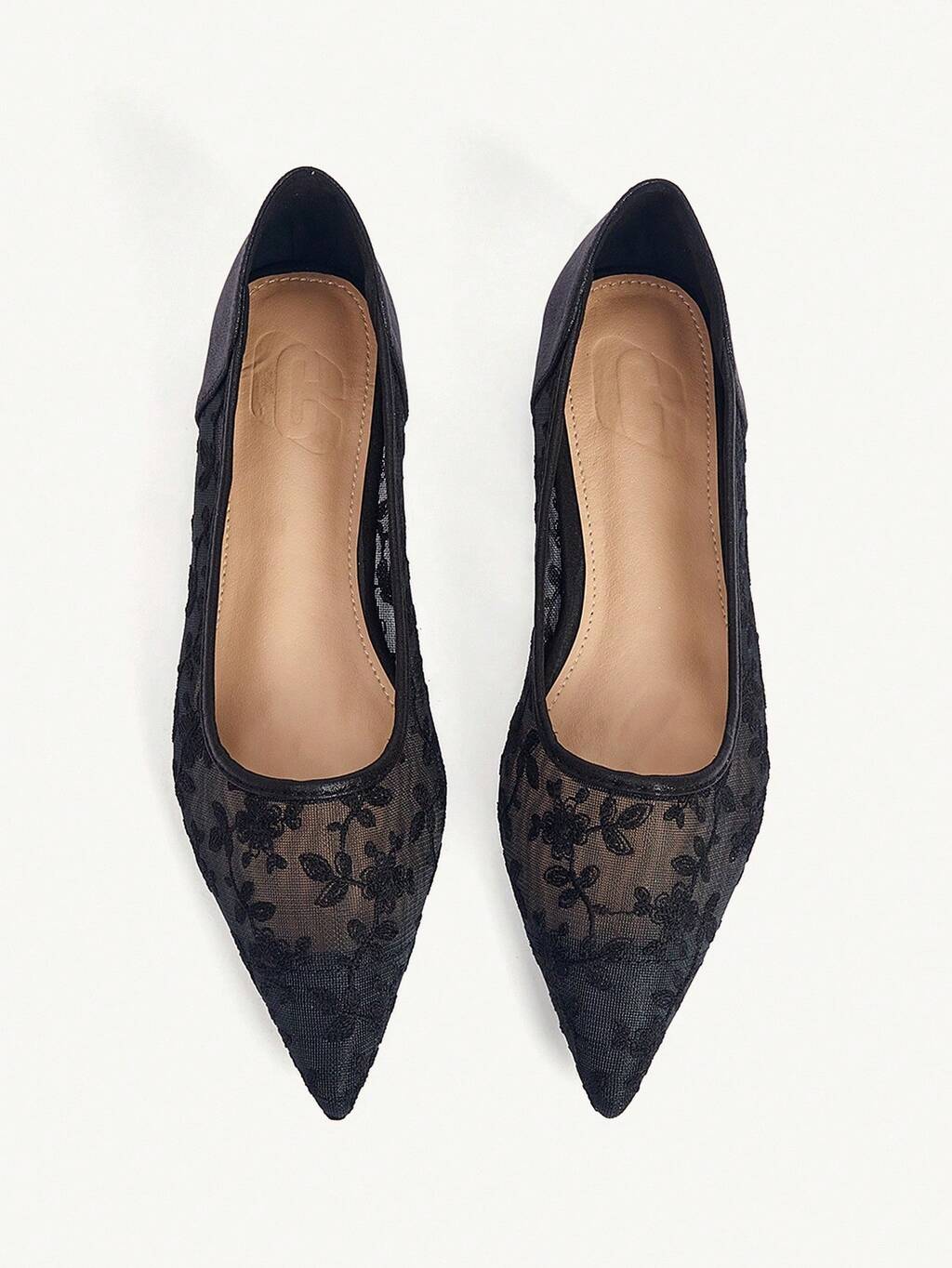 CUCCOO CHICEST Chaussures plates élégantes et confortables pour femmes, à bout pointu, en dentelle noire et maille respirante