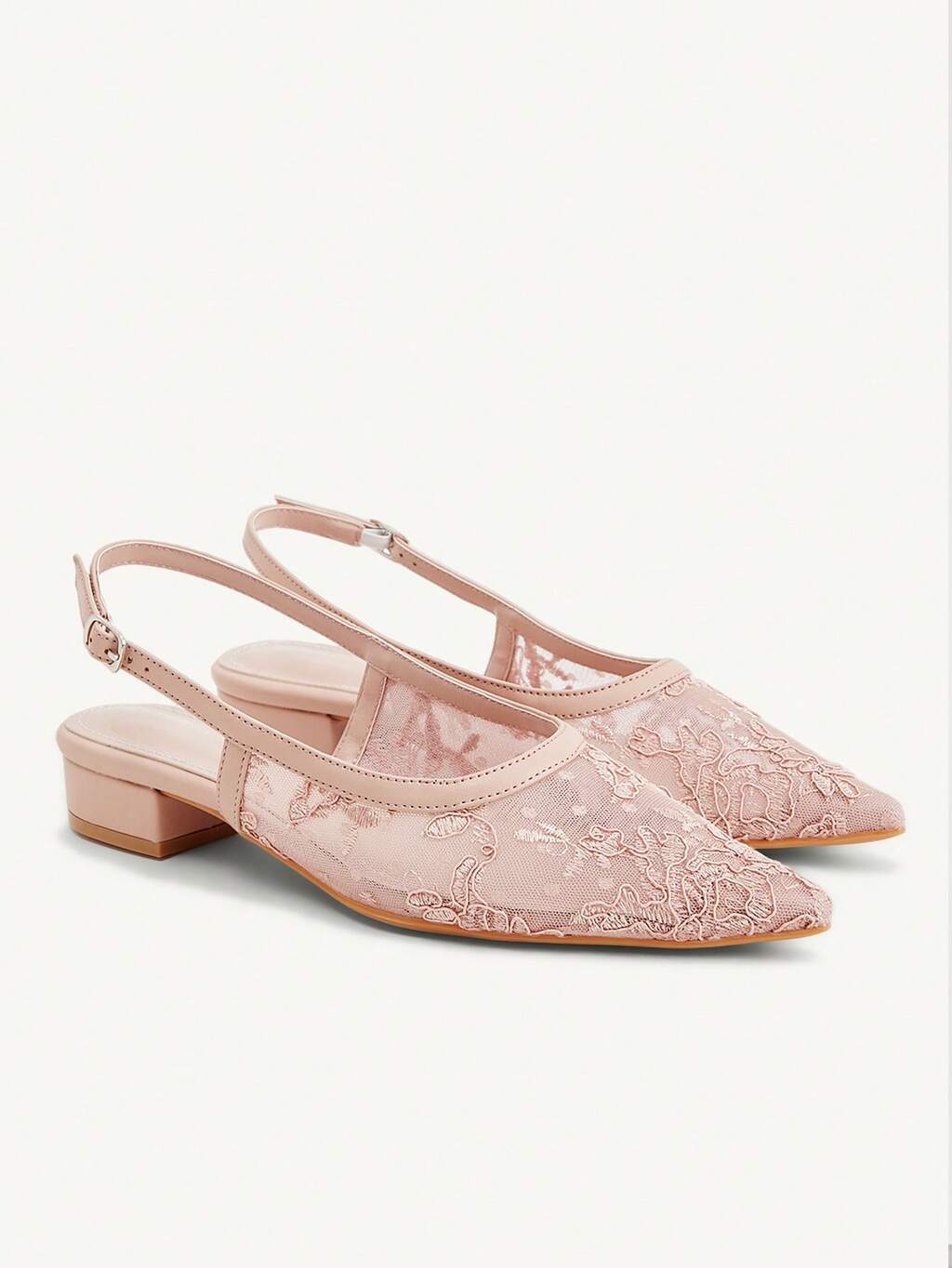 CUCCOO CHICEST Chaussures pour femmes à talon épais pointu, rose, en dentelle et maille. Chaussures sexy, élégantes et polyvalentes pour porter avec une jupe au quotidien ou lors de banquets et de fêtes. Chaussures plates à bride arrière après un mariage. Chaussures de mariée pour le printemps.