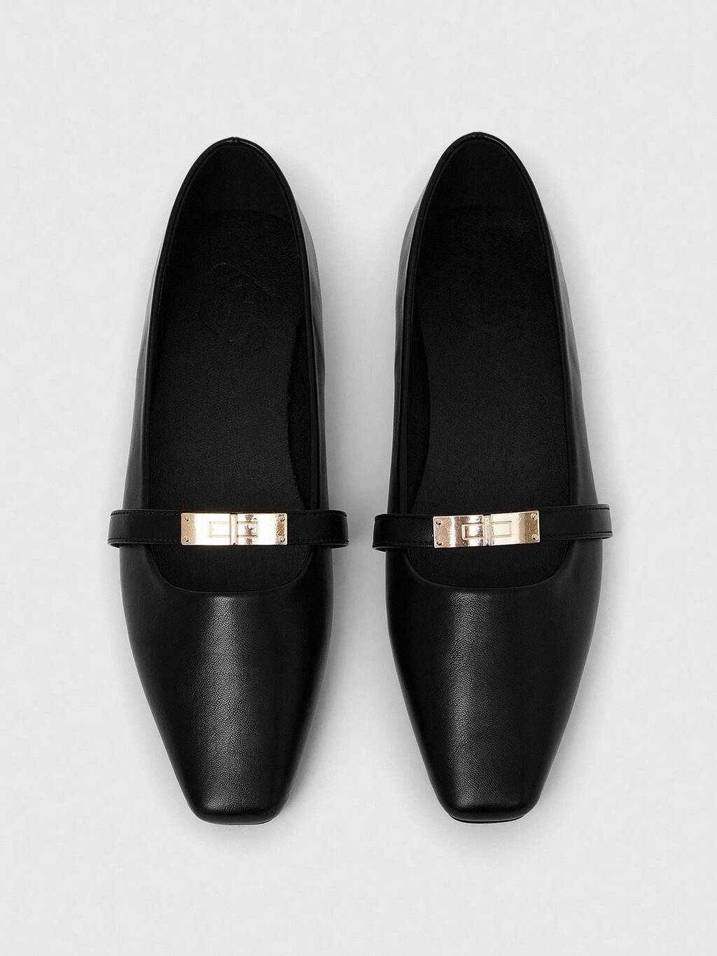 CUCCOO BIZCHIC Women's Square Toe Flat Black Metal Buckle Mary Jane Flats, Lightweight Comfortable Slip-On Suitable For Dresses For Christmas Spring Shoes
