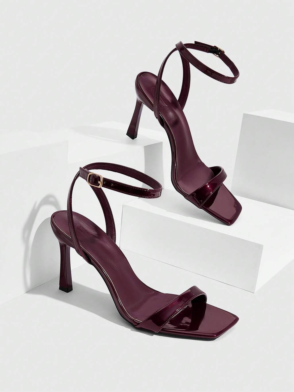 CUCCOO SZL Women Shoes Spring And Summer New Burgundy Mirror Ankle Strap Women's High Heel Sandals Stylish Simple Comfortable Versatile Sexy Party Banquet Women's Sandals Prom Heels
