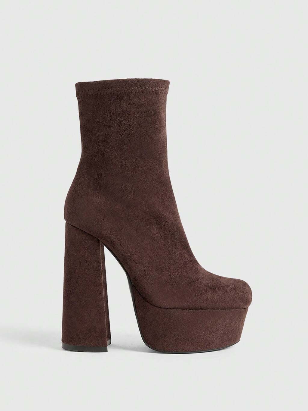 CUCCOO SZL 1 Pair Women Round Toe Thick Sole PU Suede Slip-On Mid-Calf Boots, Fashionable And Comfortable For Daily & Party Use For Christmas And New Year Holiday Vibe Fall And Winter