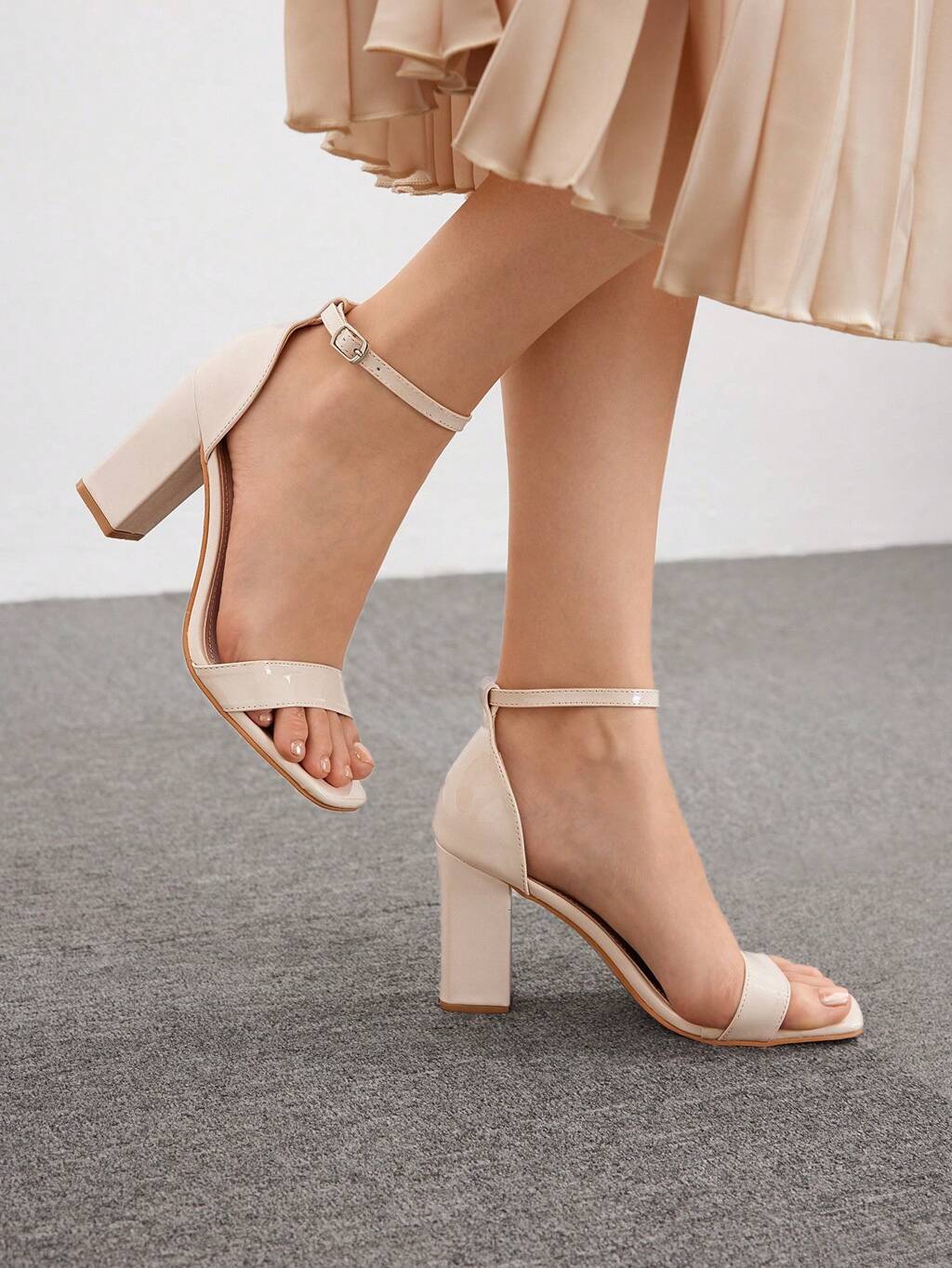 CUCCOO BIZCHIC Woman Shoes Square Toe Chunky Heel Ankle Strap Outdoor Fashion Beige High Heel Sandals For Spring And Summer Vacation Shoes Summer Elegant Basics Business Casual Business Chic Spring Shoes Spring Break Easter For Christmas Spring Shoes