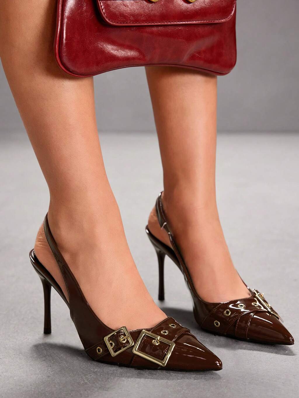 CUCCOO SZL Women's Shoes Buckle Adjustable Women's High Heels Wine Glass Heel Pointed 9CM Elegant Stiletto Shoes Mirror PU Material Stone Texture Brown High Heels Kitten Heel Suitable For Daily/Party/Office/Women's Shoes Valentine's Day