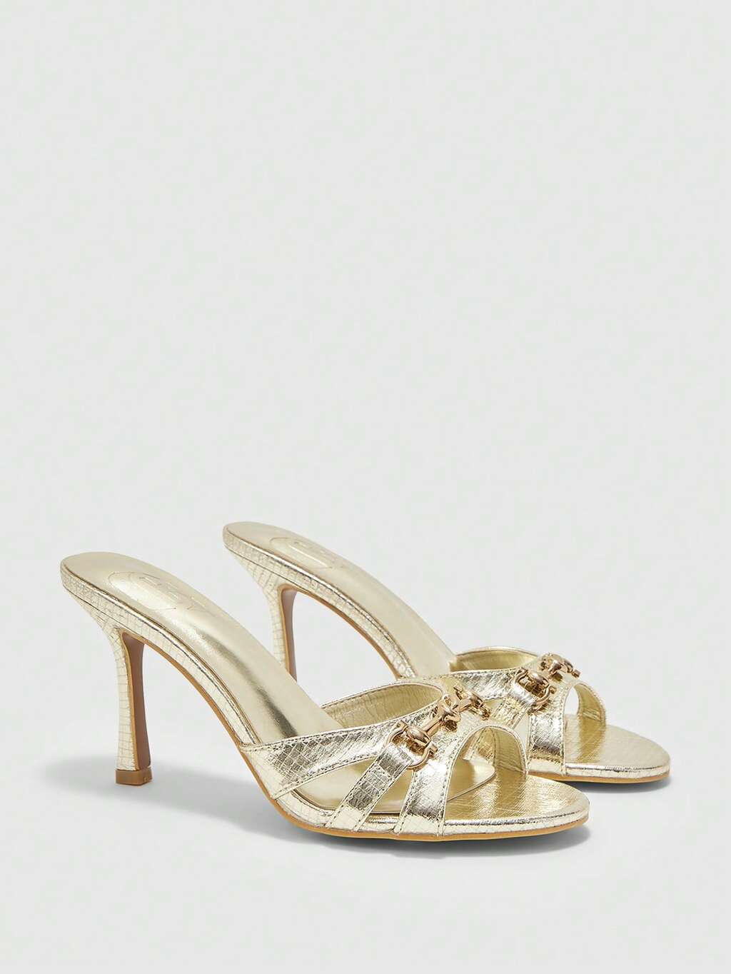 CUCCOO SZL Women's Metal Decor Fashion Daily Wear High Heel Mule Sandals Spring Shoes