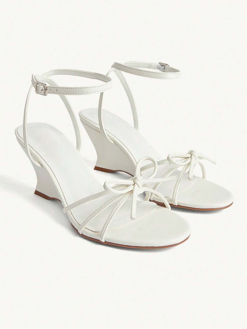 CUCCOO CHICEST White DIY Beaded Design Fashionable Thin Strap Daily Commute Strap Wedge Sandals Summer Shoes Wedding Shoes Bride Shoes