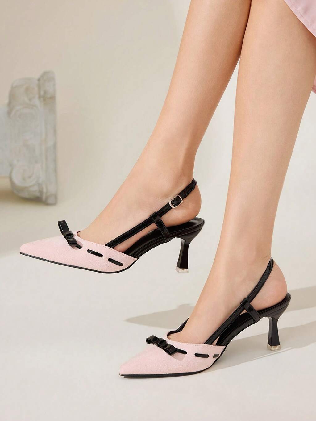 CUCCOO CHICEST Women's High Heel Pumps With Bow Design, Pointed Toe, Stiletto Heel, Contrast Color, Faux Suede And PU Leather, Elegant For Date, Romantic And Sweet Open Toe Shoes Wedding Shoes Summer Shoes Bride Shoes