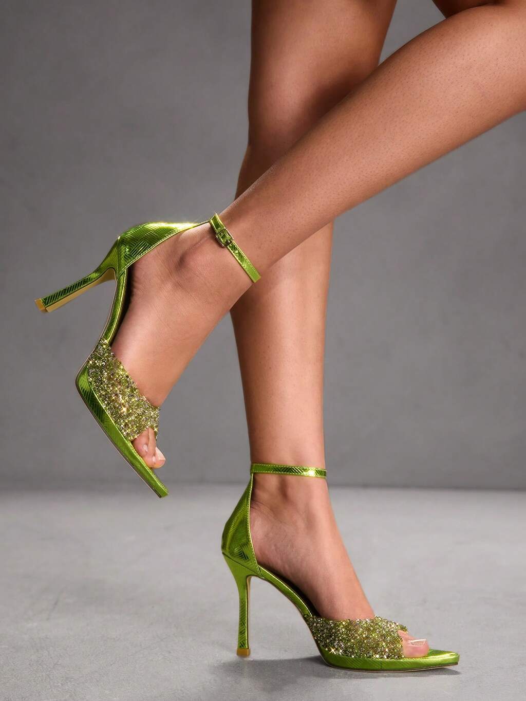 CUCCOO SZL Sandálias de Salto Elegantes e da Moda com Glitter para Mulheres