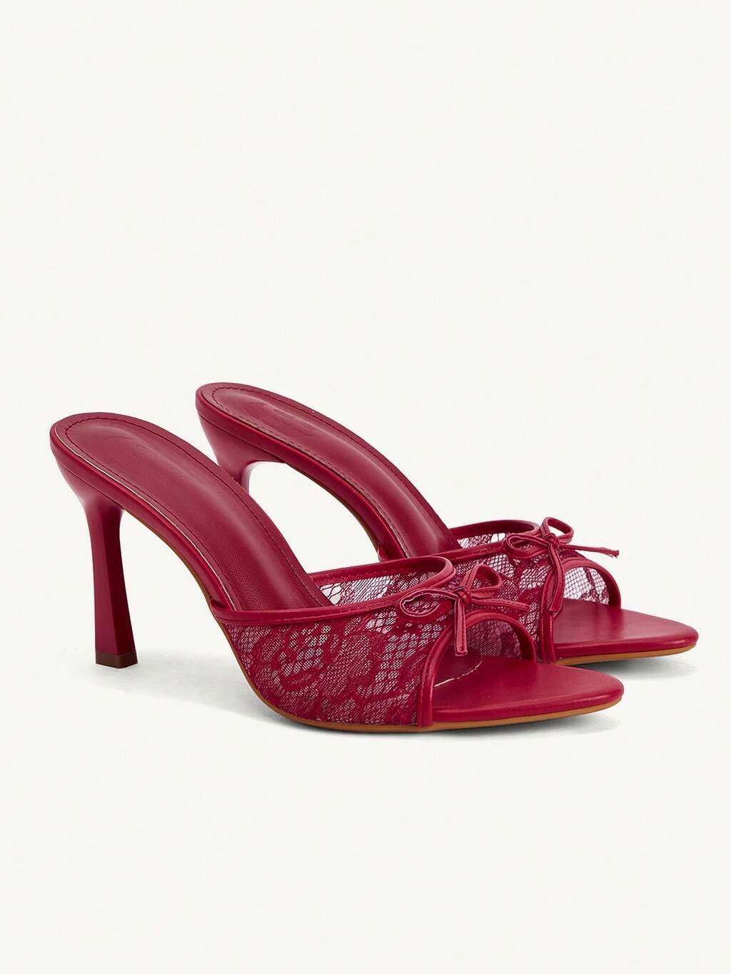 CUCCOO CHICEST Sapatos Femininos Novos de Primavera e Verão, Sandálias de Salto Alto Femininas com Laço de Renda e Tela Vermelha, Bico Aberto, Confortáveis, Versáteis, Elegantes e Sexy para Festa