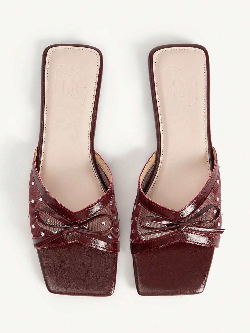 CUCCOO BIZCHIC Sandálias de Salto Elegantes com Laço Decorativo em Cor Sólida para Mulheres, Dia dos Namorados