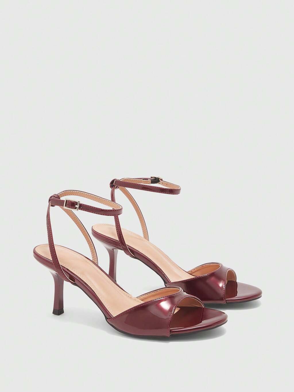 CUCCOO SZL Sandálias de Salto Alto Minimalistas Ajustáveis Bordô para Mulheres, para Uso Casual Diário, Sapatos de Primavera, Férias da Primavera, Saltos de Páscoa e Baile