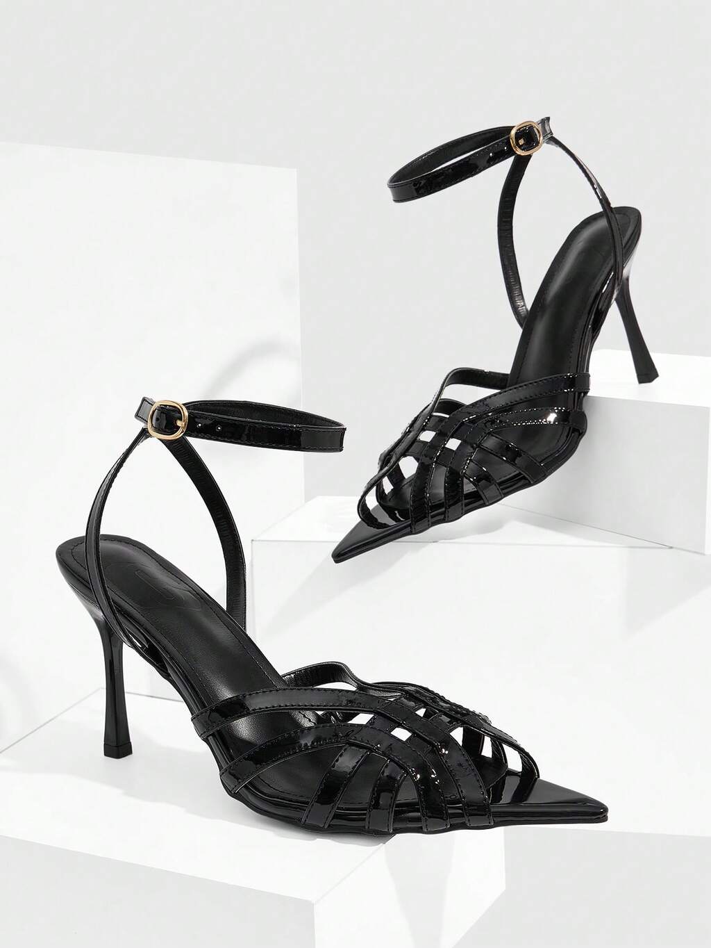 CUCCOO SZL Sandálias de Salto Alto com Bico Aberto, Estilo de Festa, Couro Envernizado PU, Detalhes Metálicos, Estilo Slip-On, para Uso Feminino