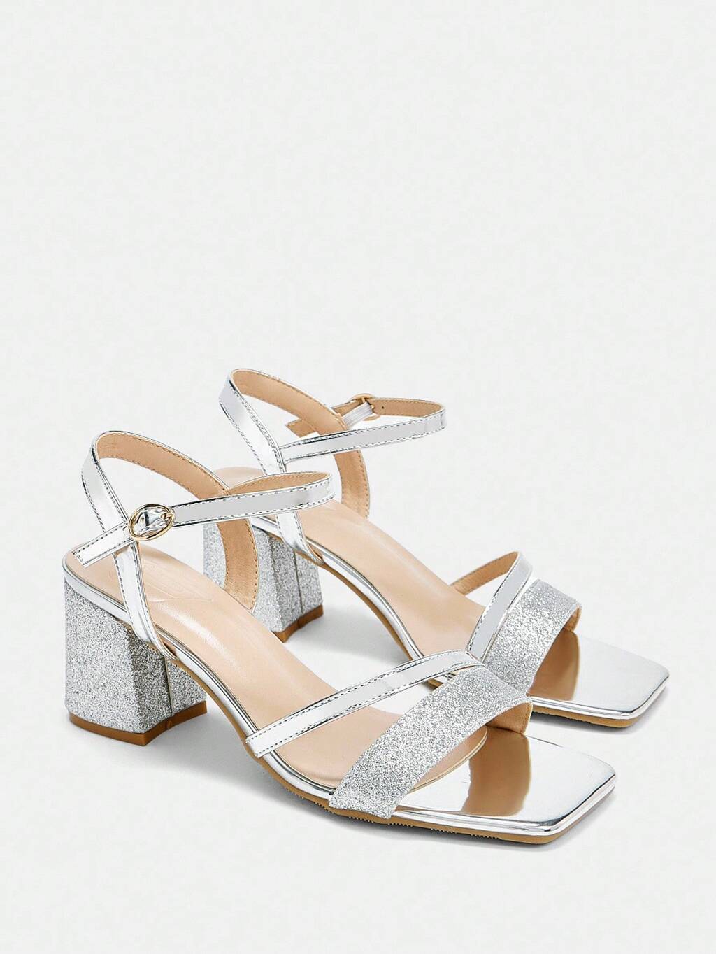 CUCCOO SZL Women's Shiny Satin Square Toe High Heel Sandals With Rhinestone Decor, Fashionable And Elegant For Party Valentine's Day