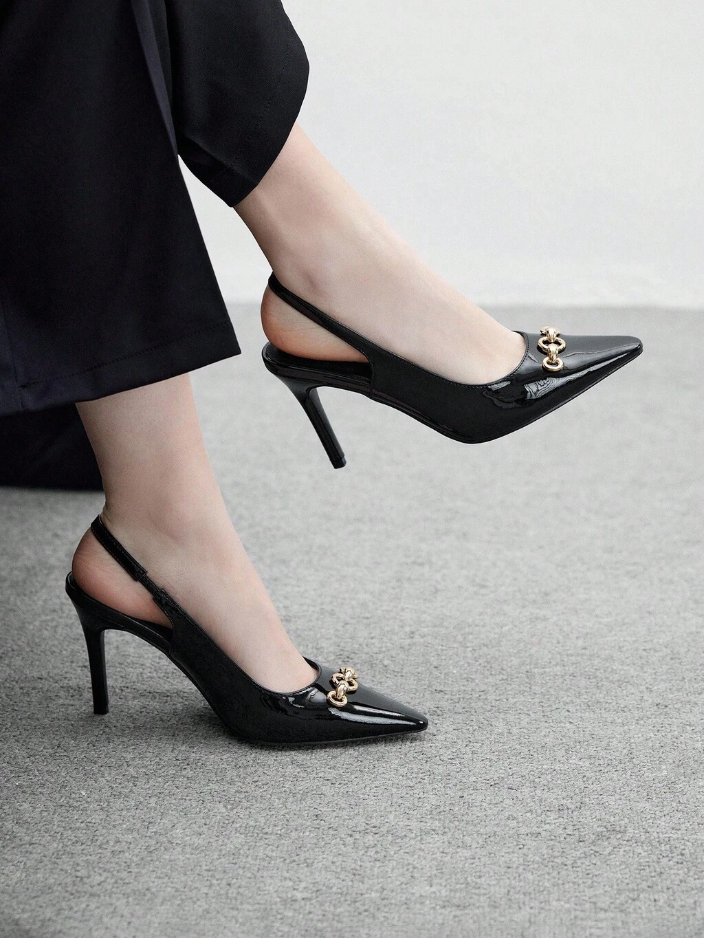 CUCCOO BIZCHIC Women Shoes Spring And Summer New Comfortable Breathable Skinny Pointed Toe Thin Heel Slingback 7cm Women's High Heel Shoes Commuting Light Sophisticated Glossy Patent Leather Solid Color Workplace Daily Dating Party Spring Shoes